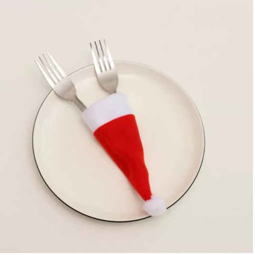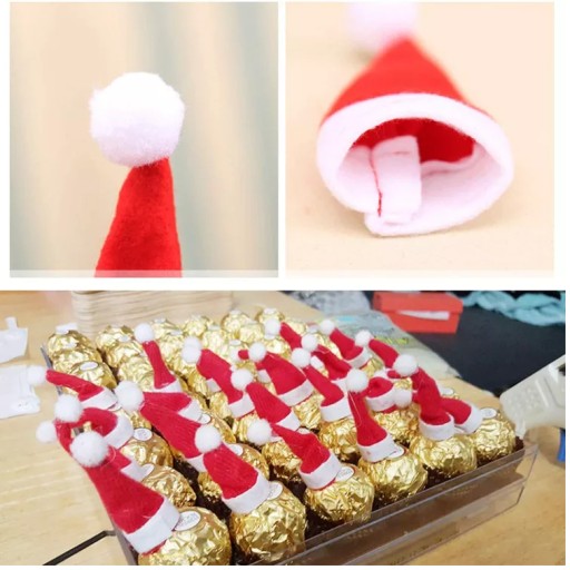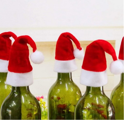 ШАПКА САНТА для СТОЛОВЫХ ПРИБОРОВ, крышка от бутылки ДЛЯ ЛОЛЛИ подарочная 10 ШТ.