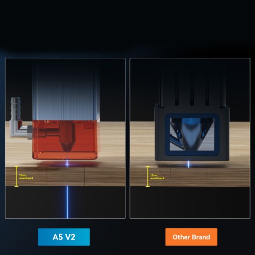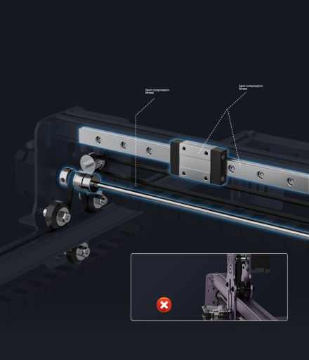 Zastosowano nową bazę liniową szyny prowadnicowej + źródło zasilania w celu zastosowania danych konstrukcyjnych i optymalizacji układów wiązek, poprawiających w dziesięciu sposobach stosowania produktu. Zmniejsza także hałas i wibracje urządzeń. W A5 V2 wyposażona w zintegrowaną śrubę zamiast kombinowanego złącza. Silnik krokowy i śruba są przyczyną, co sprawia, że ruch lasera jest lepszy, a sprzęgło trwalsze.