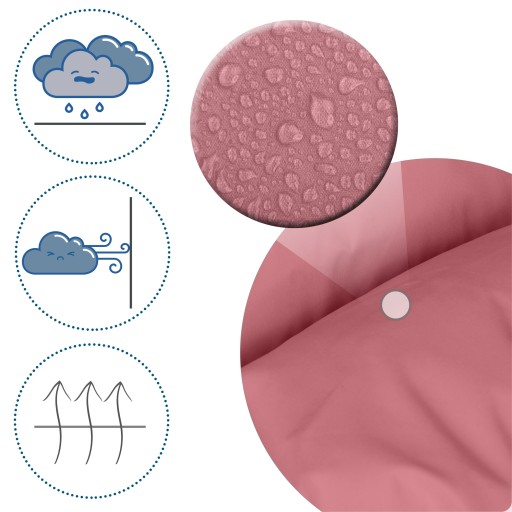 Śpiworek Elmi jest całkowicie odporny na niekorzystne warunki atmosferyczne, a przy słonecznej pogodzie zapewnia odpowiednią wentylację.