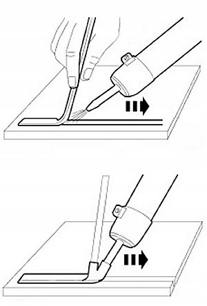 - Spawanie z dyszą BUT - dodatkowy otwór w dyszy przewidziany jest na wsunięcie plastiku