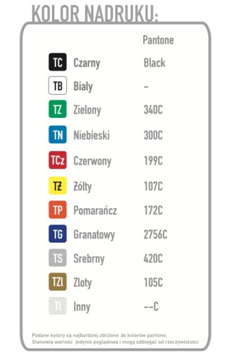 Obok przedstawiamy kolory w jakich drukujemy,