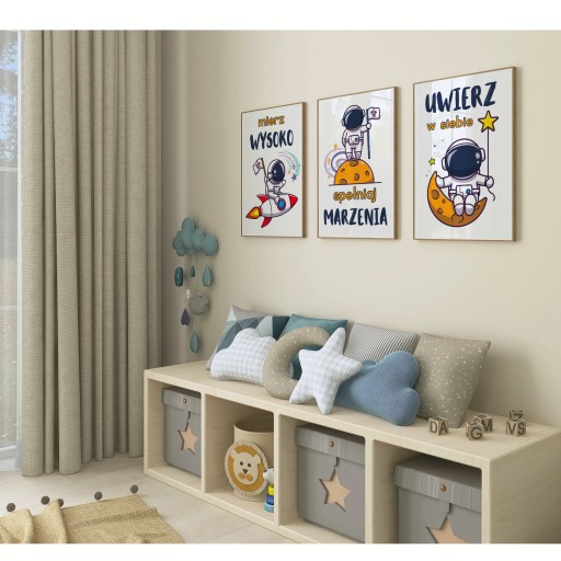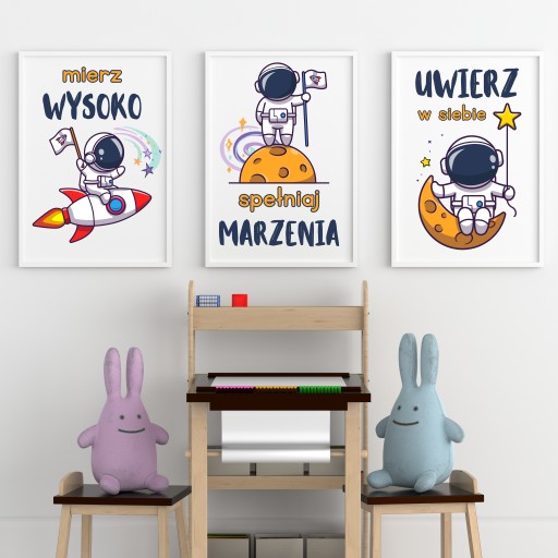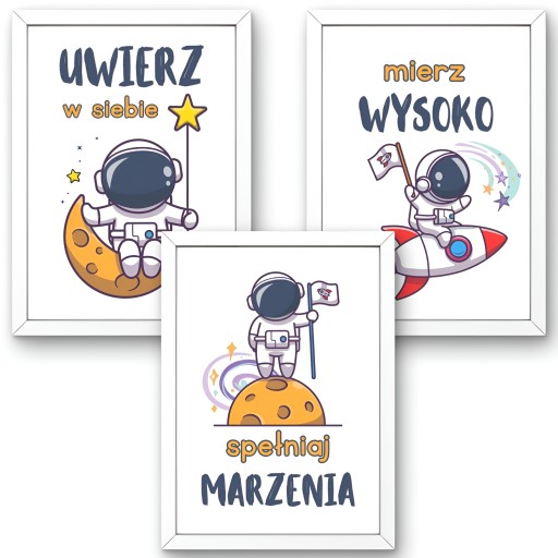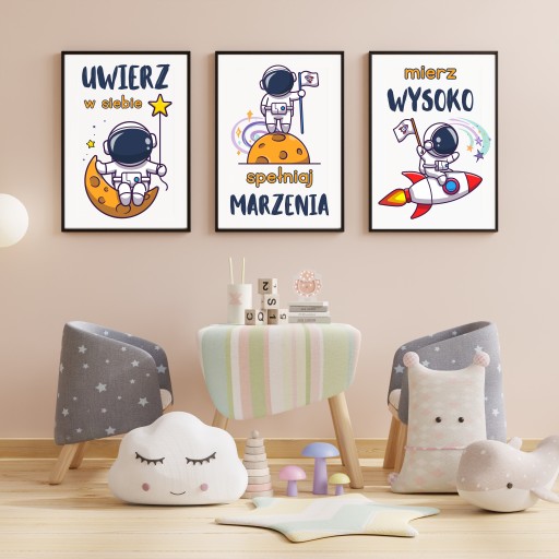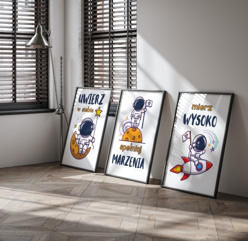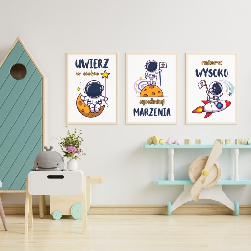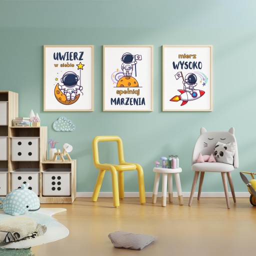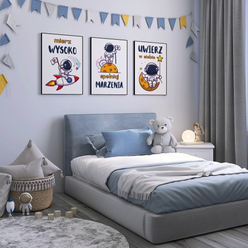 Zestaw plakatów z kosmicznym motywem to idealna dekoracja do pokoju chłopca.