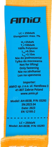 - 2x pas transportowy z napinaczem 3,5m x 25mm x 500kg
