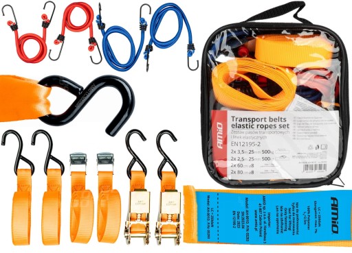 ZESTAW PASÓW TRANSPORTOWE + LINKI ELASTYCZNE DO MOCOWANIA BAGAŻU FIRMY AMiO