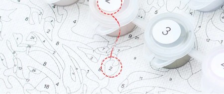 5. Każde pole oznaczone jest osobnym numerem, dobierz więc odpowiedni numer do farby i pomaluj nimi pola.
