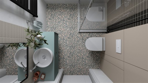 - Projekt łazienki nie obejmuje przenoszenia, wyburzania ścian lub rozmieszczenia instalacji takich jak gazowa, hydrauliczna, wentylacyjna, elektryczna i nie ma charakteru projektu wykonawczego.