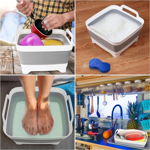 WSZECHSTRONNE ZASTOSOWANIE: To składane wiadro może być używane przy wielu różnych okazjach. Można w nim myć i suszyć naczynia. Napełnij go wodą i używaj jako wiadra do czyszczenia. Może być również używane z odpływem do odcedzania makaronu, owoców i warzyw. Zabierz tę wannę ze sobą na wakacje na kempingu i wypierz w niej ubrania. Zafunduj sobie relaksującą kąpiel stóp lub użyj jej do mycia samochodu lub zwierząt domowych.
