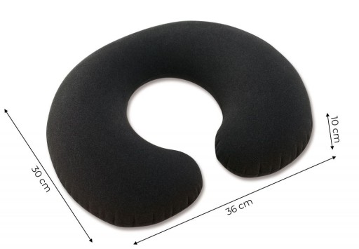 Zagłówek tworzy dmuchana poduszka w kształcie rogala, do jej wykonania użyto specjalnego tworzywa PVC, które zapewnia odpowiednią rozciągliwość i wytrzymałość.