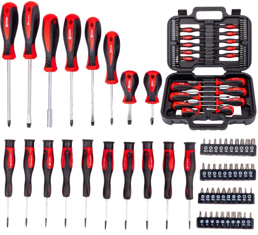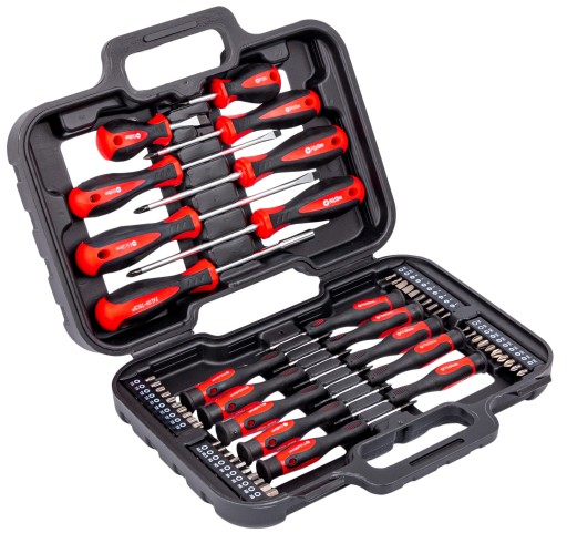 Komplet zawiera 58 wysokiej jakości elementów. Grot każdego wkrętaka wykonany z bardzo wytrzymałej stali S2, zapewniającej długą żywotność.