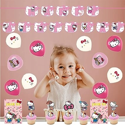Набор украшений Hello Kitty для дня рождения - 43 детали, воздушные шары, баннеры, топперы