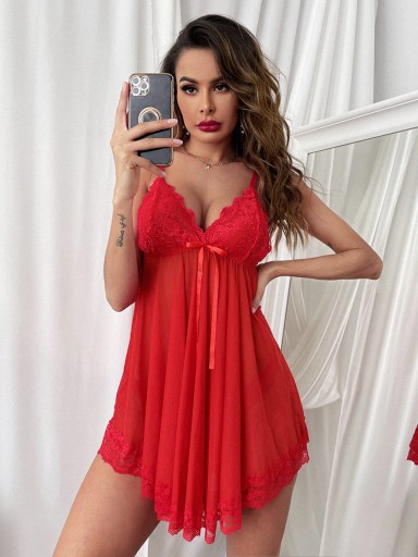 Zmysłowa damska koszula nocna wykończona została koronką. Wykonana została z przyjemnego materiału.