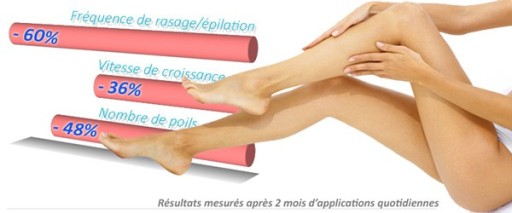 Po dwóch miesiącach kuracji, przy codziennej aplikacji na depilowane obszary, testy kliniczne wykazały :