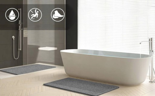 - Dolna powierzchnia maty prysznicowej wykonana jest z lateksu TPE, który jest bardziej antypoślizgowy niż inne PVC lub materiały antypoślizgowe, co utrzymuje warstwę prysznicową w pozycji antypoślizgowej, dzięki czemu nie spadnie ani nie ześlizgnie się,