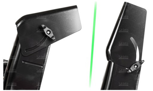 Stalowa rynna wyrzutu z szybką regulacją kąta wyrzutu.