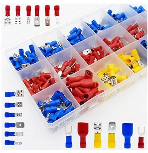 - Obszerny zestaw – oferujemy kompletny zestaw 280 całkowicie izolowanych końcówek kablowych. Duży wybór wtyczek, które są przydatne w większości sytuacji – wtyczki okrągłe, wtyczki i gniazda, widełki itp.