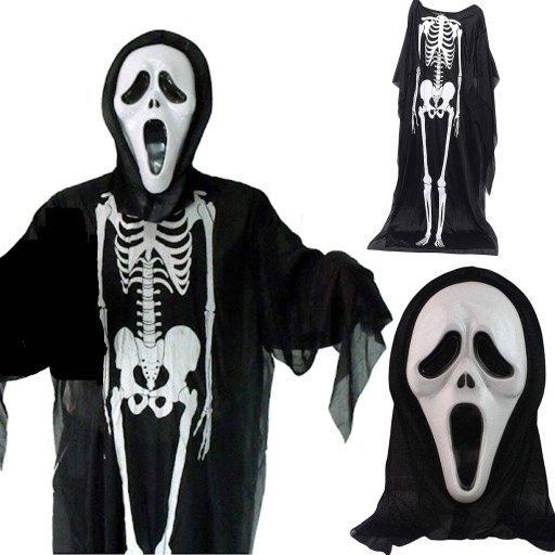PRZEBRANIE DUCH KOŚCIOTRUP + MASKA SZKIELET SZKIELETOR LUŹNY KOSTIUM KRZYK