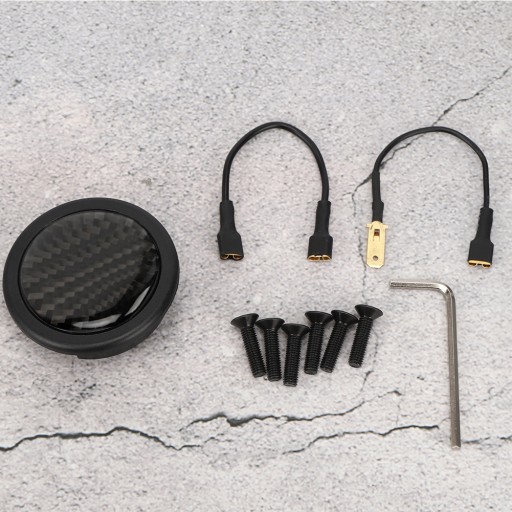Montaż: pasuje do wszystkich 6 śrub do kierownic MOMO z środkowym przyciskiem klaksonu z 2 złączami łopatkowymi z tyłu;