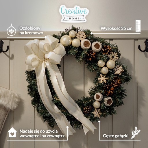 Wieniec wianek stroik świąteczny dekorowany kremowy drzwi stół ścianę 35cm