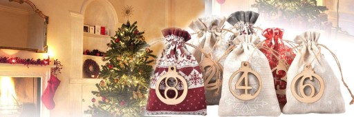 KALENDARZ ADWENTOWY DIY WISZĄCY WORECZKI DO UZUPEŁNIENIA JUTOWE NEXO