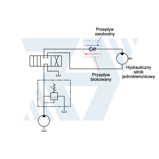 Zawór zwrotny jest bardzo popularnym zaworem hydraulicznym wykorzystywanym do kontroli kierunku przepływu oleju, odcinając dopływ oleju do miejsc niepożądanych np. jednokierunkowy silnik hydrauliczny, filtr oleju, linia spustowa, inne.