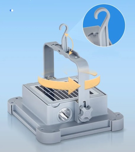 - Hak do zawieszenia lampa świeci w dół oświetlając np stolik lub cały namiot,
