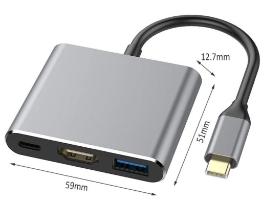 Przejściówka / Adapter 3w1 HUB USB-C HDMI 4K USB 3.1