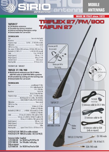 ANTENA MONTAŻOWA SIRIO TRIFLEX CB/FM/GSM