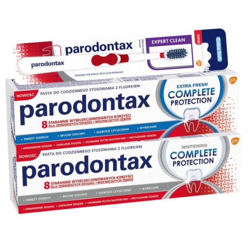 Pasta Parodontax Complete Protection Extra Fresh oferuje 8 specjalnie opracowanych korzyści, które pomagają zachować zdrowe dziąsła i mocne zęby.