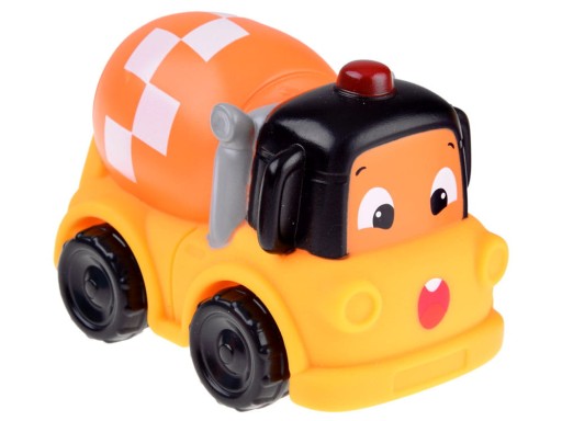 Uwagę zwracają przyjazne, uśmiechnięte minki, które zachęcają do zabawy. Autka działają na popych, więc sprawdzą się podczas zabawy w miasteczko czy budowę.