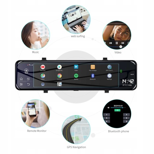 - Obsługa Sklepu Google Play Store oraz dostępnych tam aplikacji na Androida. Niezliczona ilość aplikacji może zostać wykorzystana aby zwiększyć możliwości Twojego komputera pokładowego. Google Maps, Waaze, Yanosik, Google Voice Assistant, Youtube, to tylko niektóre z możliwości.