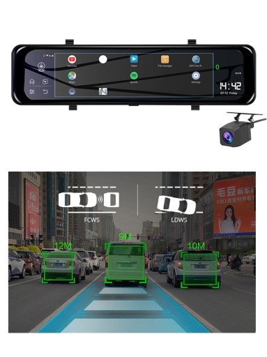 - Ekran o szerokości 29cm tego typu umożliwia jednoczesne monitorowanie drogi przed i za samochodem w formacie 16:9, a po przełączeniu w tryb stand-by staje się szerokim lusterkiem wstecznym o bardzo dobrej jakości odbitego obrazu ponieważ pokryty jest warstwą szkła.