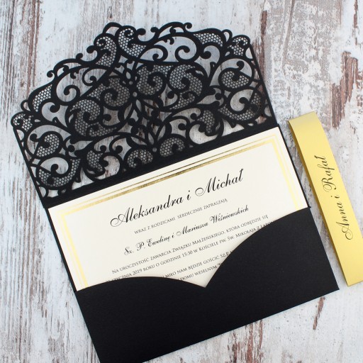 - zaproszenia wycinane laserowo wykonane z wysokiej jakości włoskiego papieru o wysokiej gramaturze.