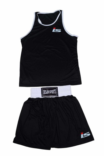 Wysokiej jakości stroj bokserski firmy IHSAN SPORT składa się z koszulki i spodenek. Wykonane są z bardzo wytrzymałego materiału 100% POLIESTER. Bardzo lekki, elastyczny, przyjazny dla skóry, miły w dotyku, wytrzymały, nie mechaci się podczas prania, nie odbarwia, zachowuje kształt i rozmiar po każdym praniu, szybko schnie. TERMOAKTYWNY materiał sprawia że trening staje się przyjemnością gdyż nadmiar potu i wilgoci wytworzony podczas wysiłku fizycznego są transportowane z powierzchni skóry do warstw zewnętrznych materiału. Spodenki dodatkowo posiadają sznurek w pasie do regulacji, bardzo lekkie. Koszulka i spodenki szyte maszynowo ze szczególną starannością o każdy detal. Komplet przeznaczony zarówno do codziennego użytku, jak i na trening.