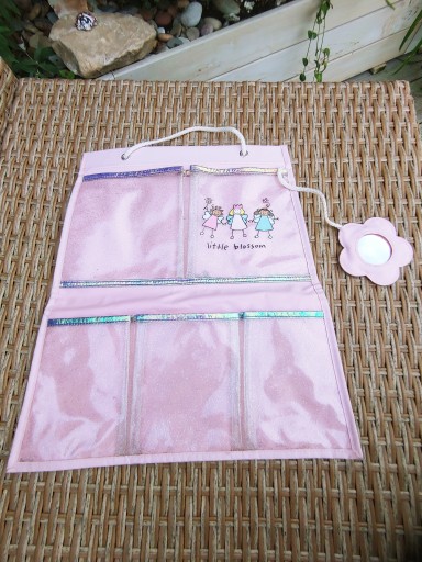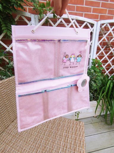 pojemnik segregator wieszak organizer z kieszonkami, Little Blossom, wysokośc 38cm, szerokośc 35cm, tkanina nylonowa i plastik, używane w stanie bardzo dobrym
