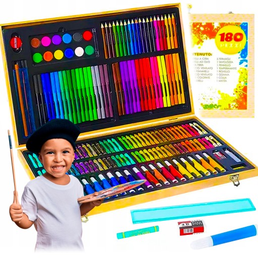 ✍️ DUŻY ZESTAW - zestaw aż 180 elementów, idealny do rysowania, kolorowania czy malowania - masz wszystko co potrzeba aby rozwijać kreatywność swoich dzieci.