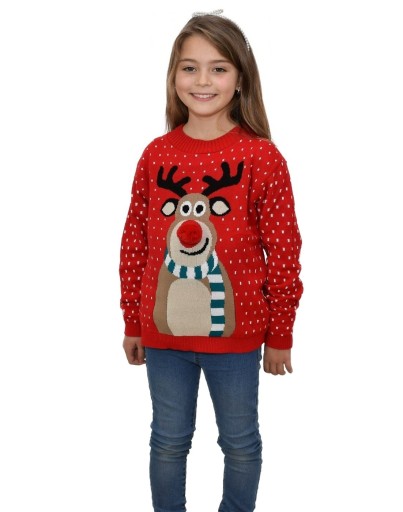 CZERWONY DZIECIĘCY SWETER Z RENIFEREM NOS 3 D