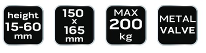 Charakteryzuje się maksymalnym obciążeniem 200 kg oraz kompaktowymi wymiarami 150 x 165 mm i grubością 0,65 mm.