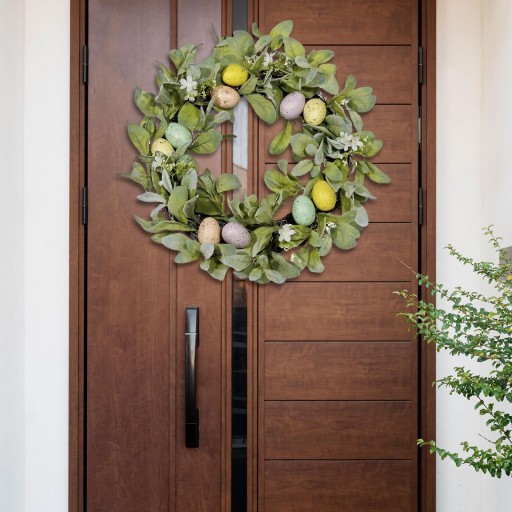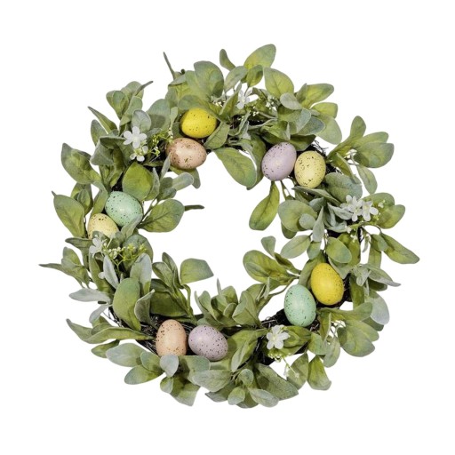 Materiał: wykonany z ABS, wykorzystuje pisanki i zielone liście jako ozdobę, realistyczne i trwałe.