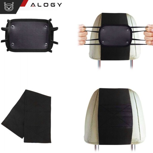 Uchwyt samochodowy na zagłówek auta samochodu mocny rzep na tablet telefon czytnik Alogy Car elastyczny czarny
