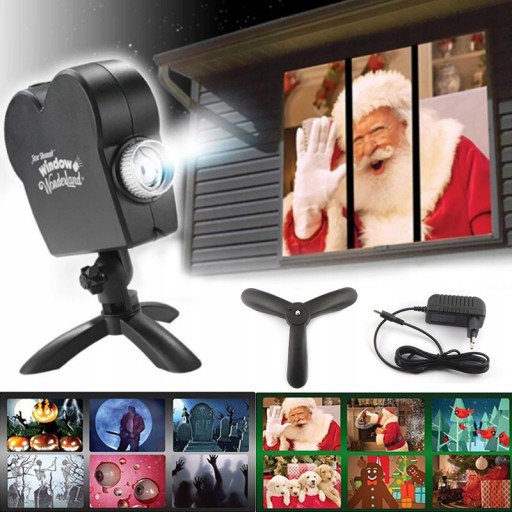 Nazwa: Projekcja świątecznaMateriał: tworzywo sztuczneKolor:czarnyWtyczka: wtyczka EURozmiar: 22,5*21*6,5 cm12 rodzajów wzorów: 6 rodzajów bożego narodzenia, 6 rodzajów Halloween