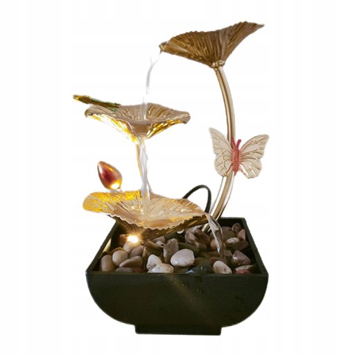 Cechy: Dekoracja fontanny zapewnia spokój i dekorację do każdego pomieszczenia, tworzy również delikatny kojący przepływ wody, odtwarzając widoki i dźwięki spokoju.