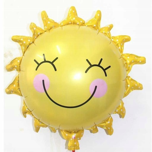 Jasny i wesoły balon w kształcie uśmiechniętego słońca, zabawny i uroczy.