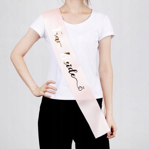 Złota szarfa z literami dla druhny na przyjęciu weselnym