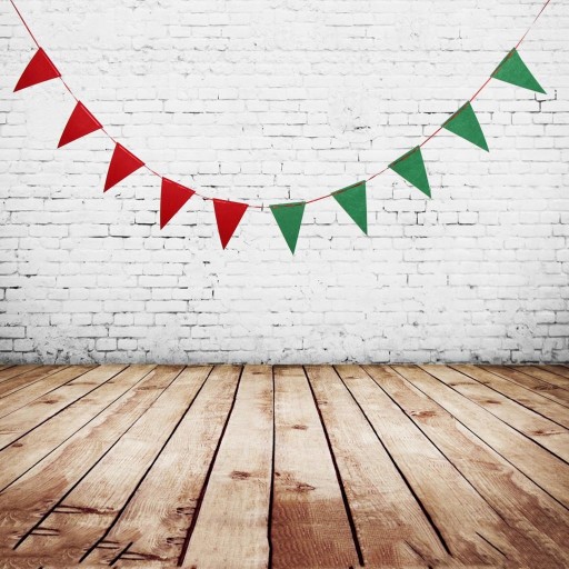 2xFabric Trójkąt Proporczyk Banner Wesele Wiszące Dekoracje Czerwony i Zielony
