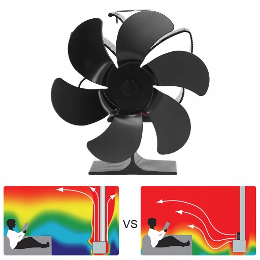 . Wentylator Kominkowy 6łopatkowy Zasilany Ciepłem