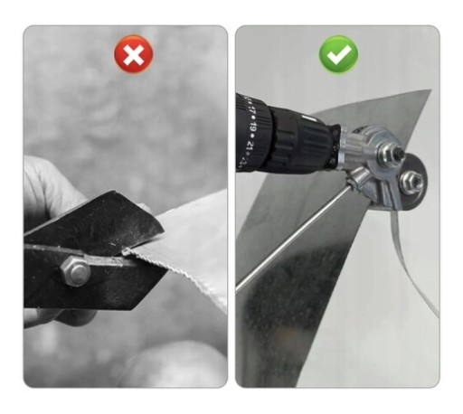 - ŁATWOŚĆ UŻYCIA: Końcówka do cięcia blachy jest łatwa w montażu i użyciu, co znacznie ułatwia i przyspiesza proces cięcia. Nie wymaga specjalistycznej wiedzy ani doświadczenia, dlatego jest doskonałym rozwiązaniem dla amatorów i hobbystów. Proces montażu jest prosty i można go wykonać w kilka sekund.
