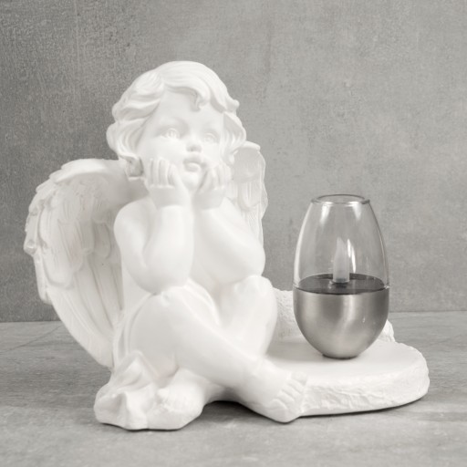 ➡️ Ozdobna gipsowa figurka ogrodowa, nagrobna z lampą LED w kształcie aniołka