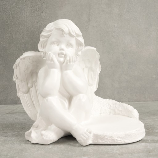Ozdobna gipsowa figurka ogrodowa, nagrobna w kształcie aniołka