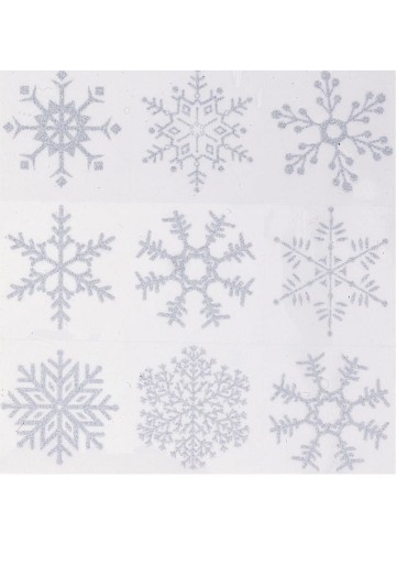 - transparentne, dwustronne naklejki na okno - brokatowe, srebrne płatki śniegu