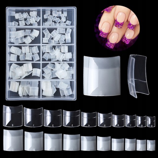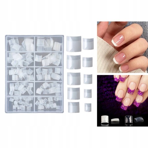 200 szt. Kwadratowe francuskie krótkie akrylowe sztuczne paznokcie naturalne